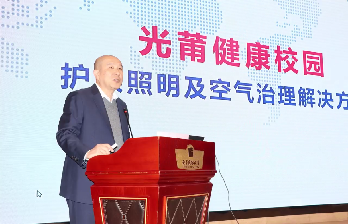 会议期间,光莆股份副总经理阎文起,发表“健康校园,护眼照明及空气治理解决方案”的主题演讲,深入阐述了公司在护眼照明及空气治理领域的创新理念与实践成果。作为上市企业,光莆始终坚持以创新为引领,以守护学生健康为己任。应用先进的照明技术与空气净化技术,打造一个健康、舒适的学习环境,守护学生视力与呼吸健康。