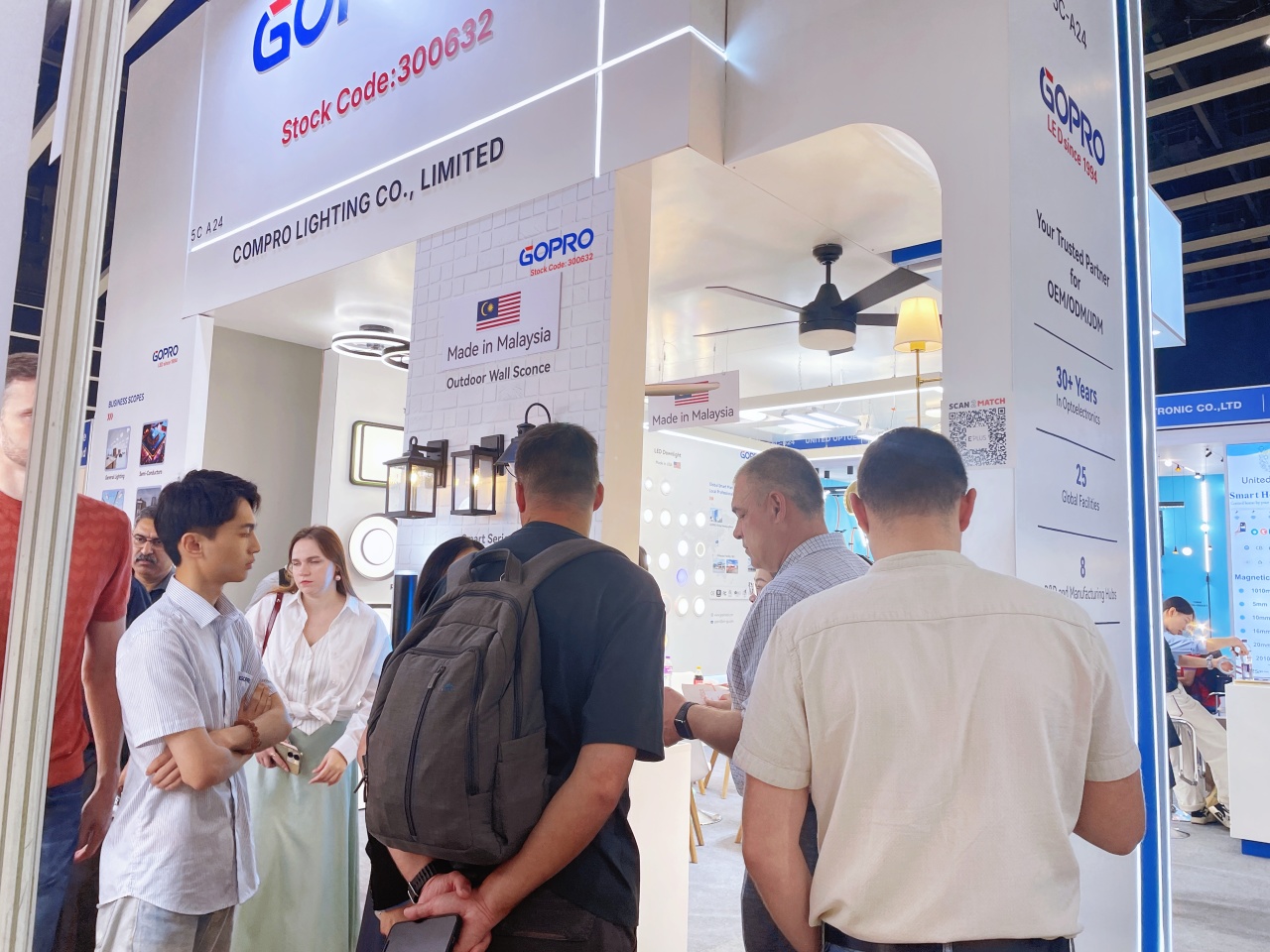 展期内,光莆人气高涨,全球客商络绎不绝。从商业空间照明到家居智能光影,从工业节能照明到户外智慧亮化,全方位展现产品如何通过 “传感 + 照明” 的创新融合,为不同领域提供定制化解决方案。现场,光莆核心团队和技术骨干同众多国际客户深入交流,传达以光科技点亮健康生活的理念,获得高度好评和信赖,为后续合作奠定坚实基础。