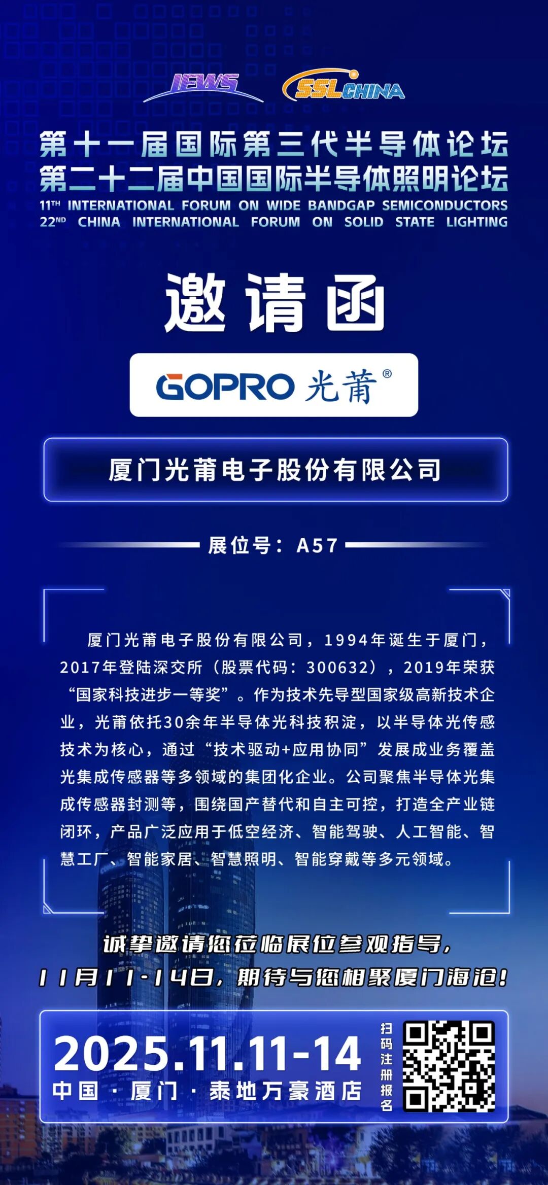2025年11月11-14日,年度国际第三代半导体行业盛会——第十一届国际第三代半导体论坛&第二十二届中国国际半导体照明论坛(IFWS&SSLCHINA 2025)将在厦门召开。