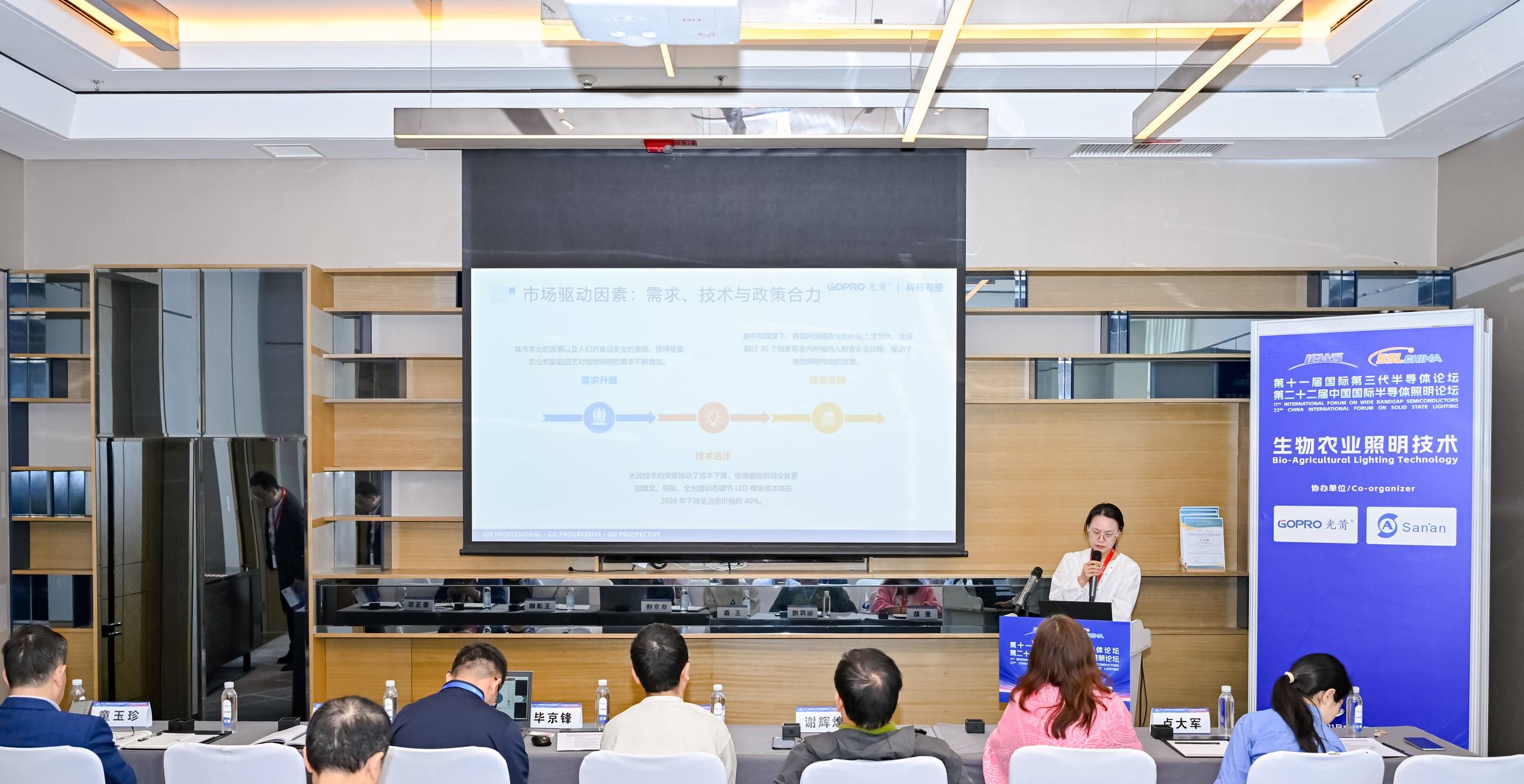 在“生物农业照明技术分会”上,光莆股份研究院副院长王清娜带来了《数字之光,照亮农业现代化未来》主题分享,洞察并剖析市场需求,生动阐述光莆植物照明系统在农业中的技术原理、实践应用与核心价值,以传感器赋能“智慧之光”,为农业、植物工厂等场景提供可持续解决方案,驱动农业现代化。